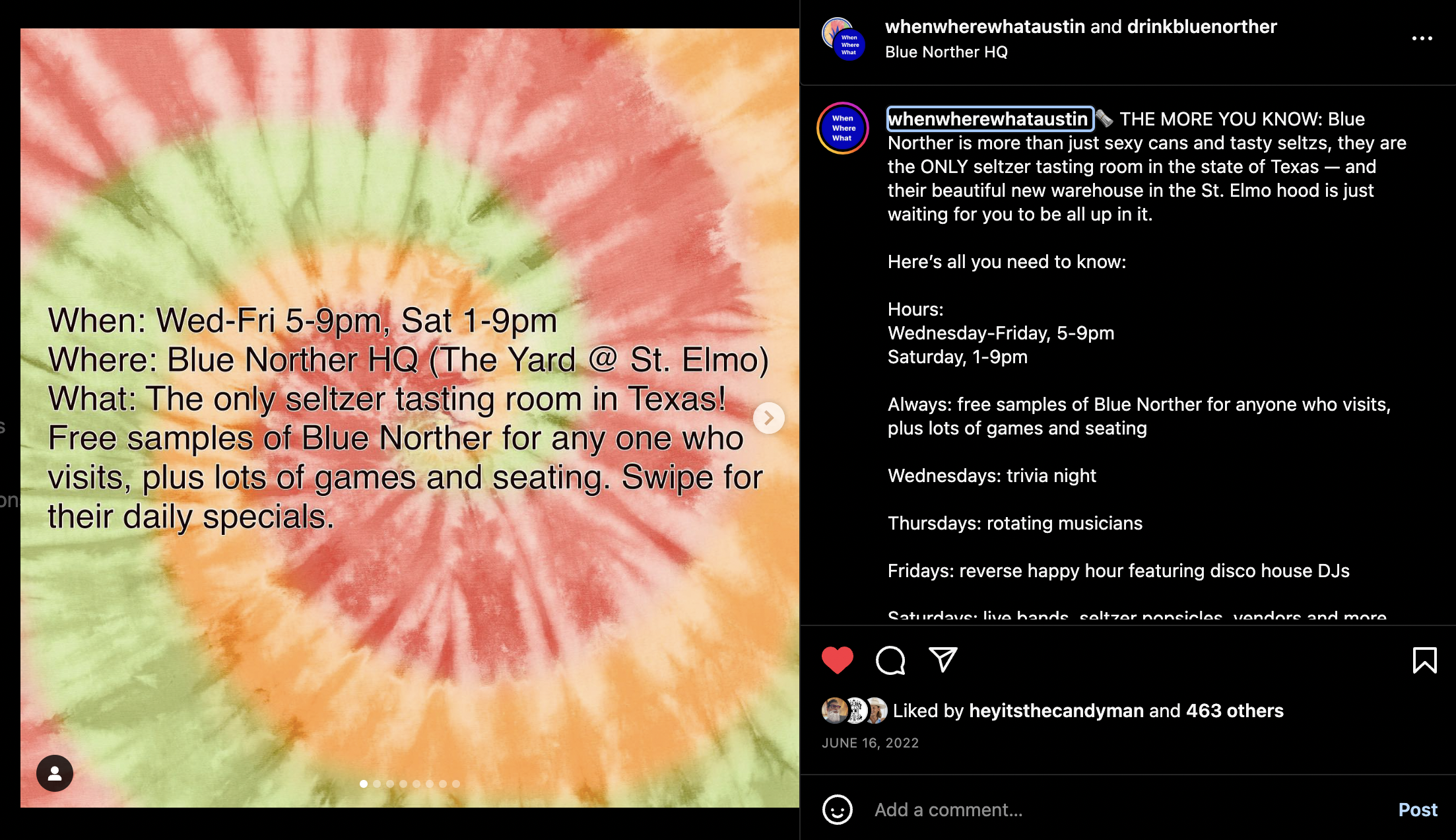During the spring and summer of 2022, I contracted with ten different influencers to help us create content for Blue Norther. With a combined reach of over half a million, our influencers helped us highlight the right occasions that are perfect for a Blue.