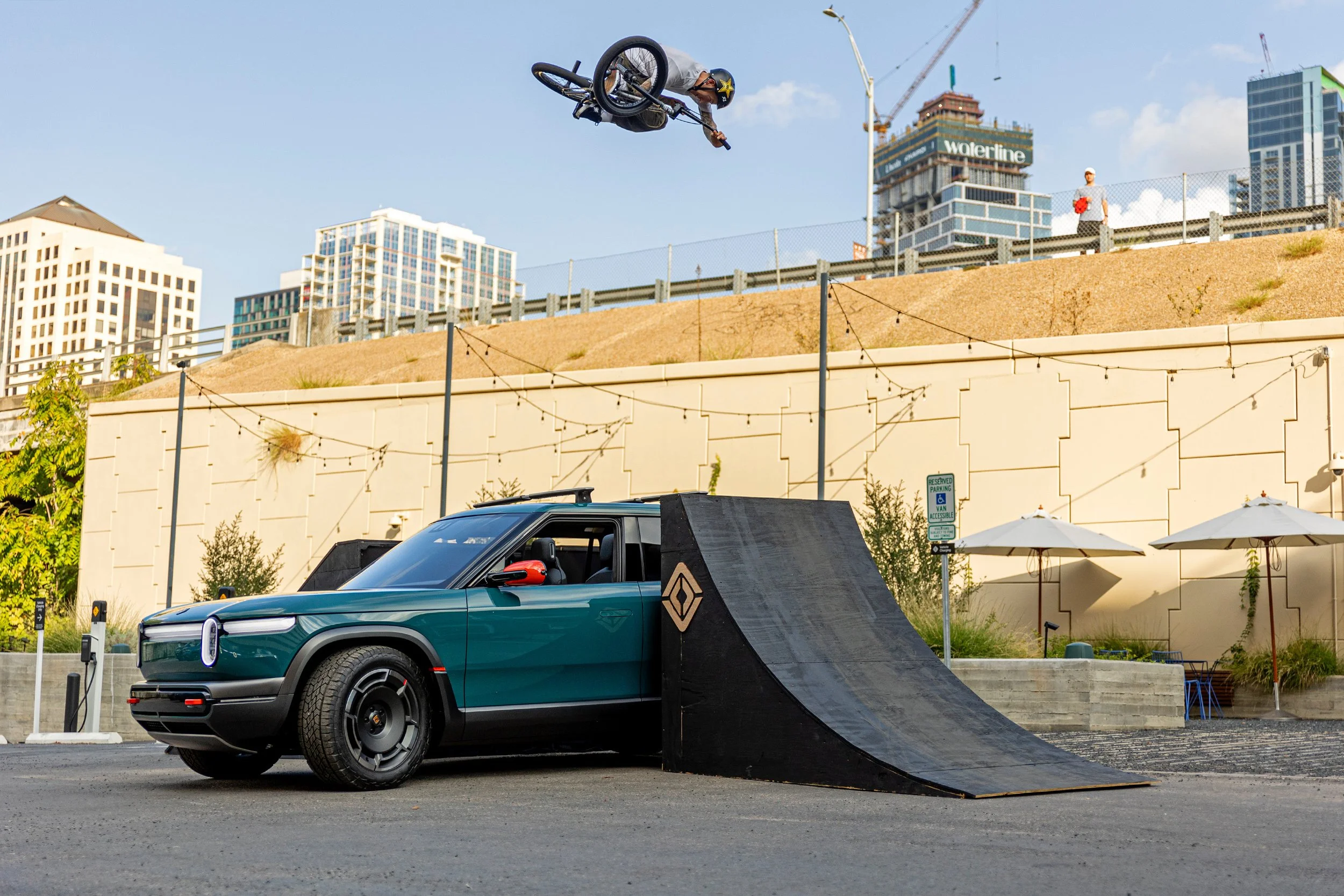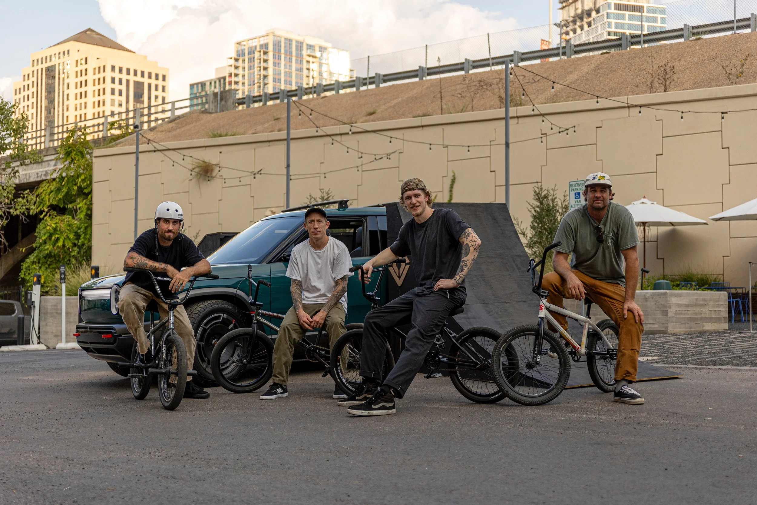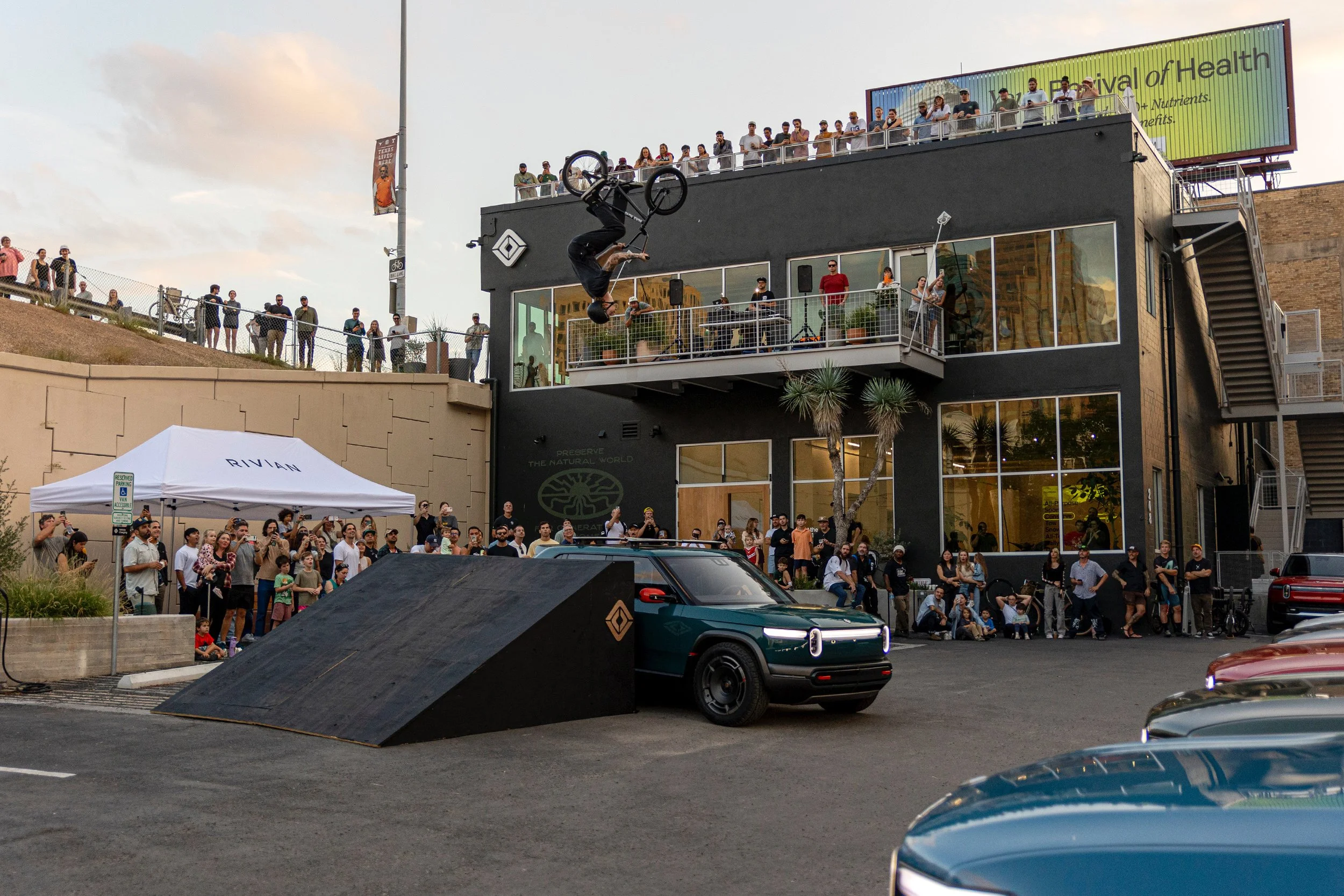 After receiving a tentative yes from my boss and my boss’s boss, I jumped through a variety of hoops with the internal Rivian legal and risk team to ensure we were all on board. I worked with Aaron Ross to build a team of incredible Austin BMX riders, including Brett Silva, Chase Hawk, Jayden Mucha, and Darryl Tocco, who captured all the content. Then, on 11/7/24, we jumped the hell out of a million-dollar R3X prototype.