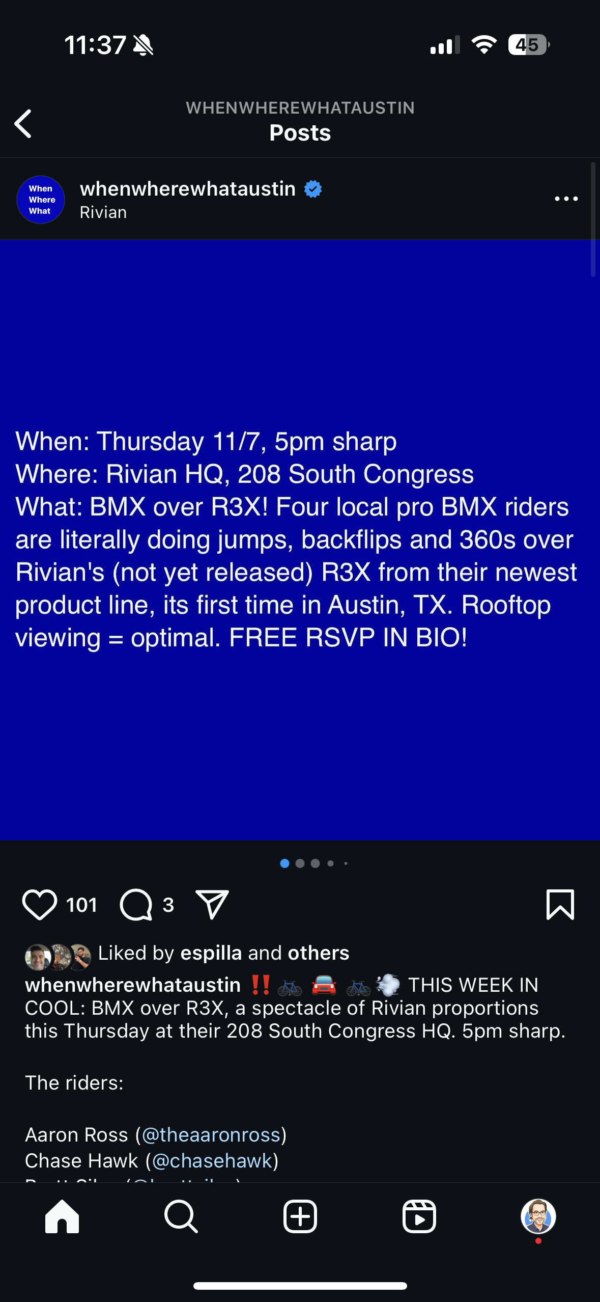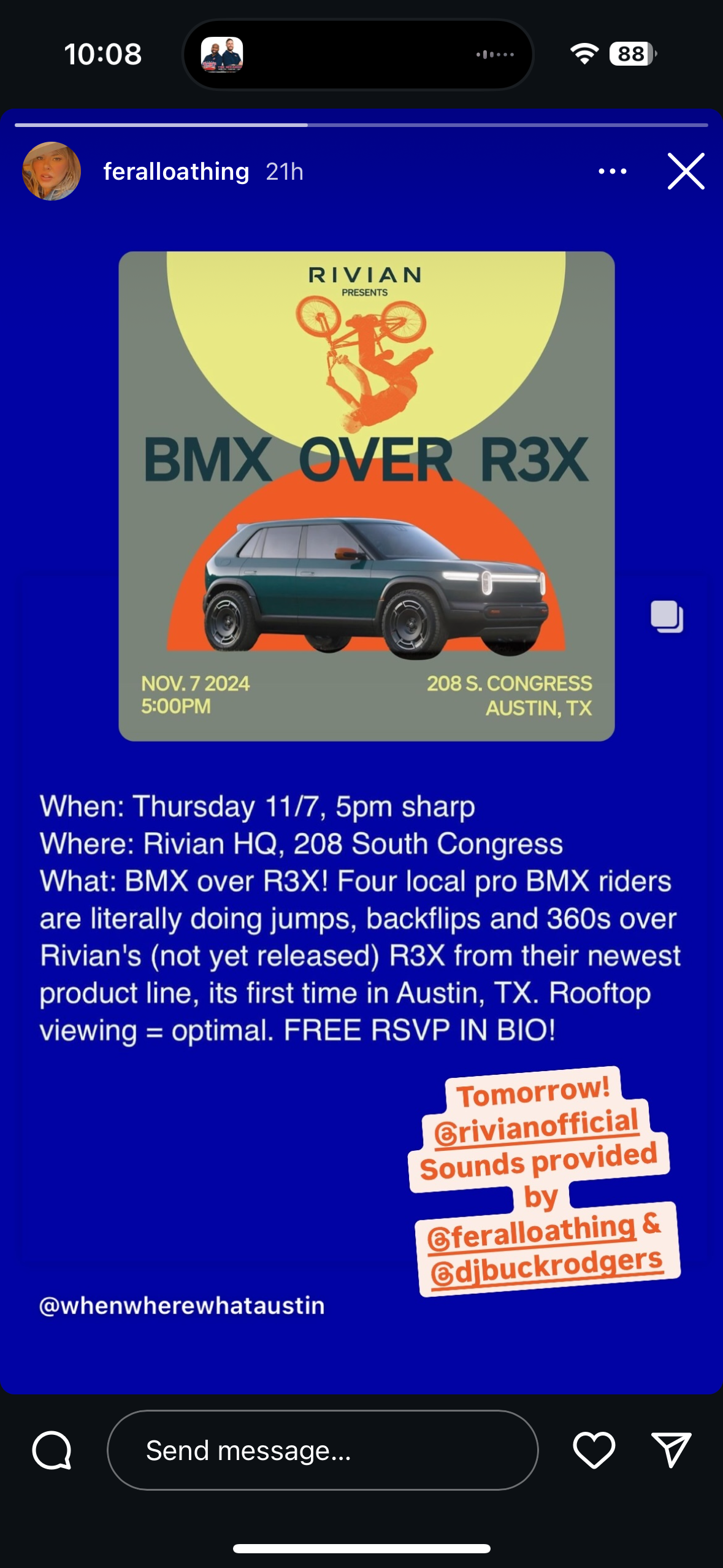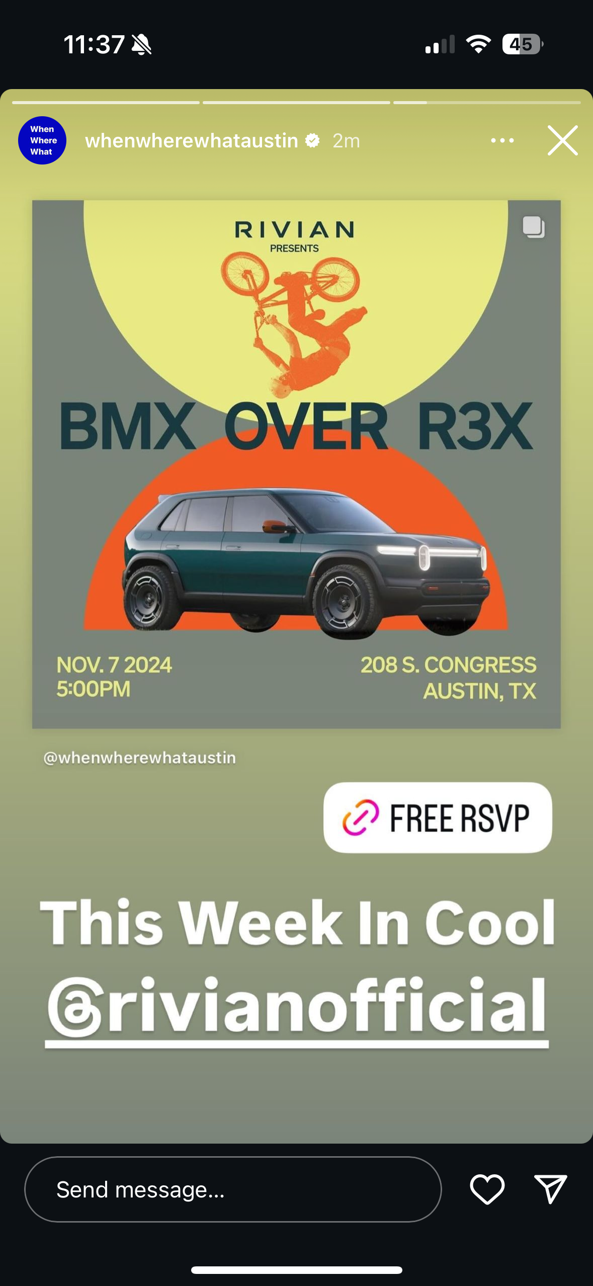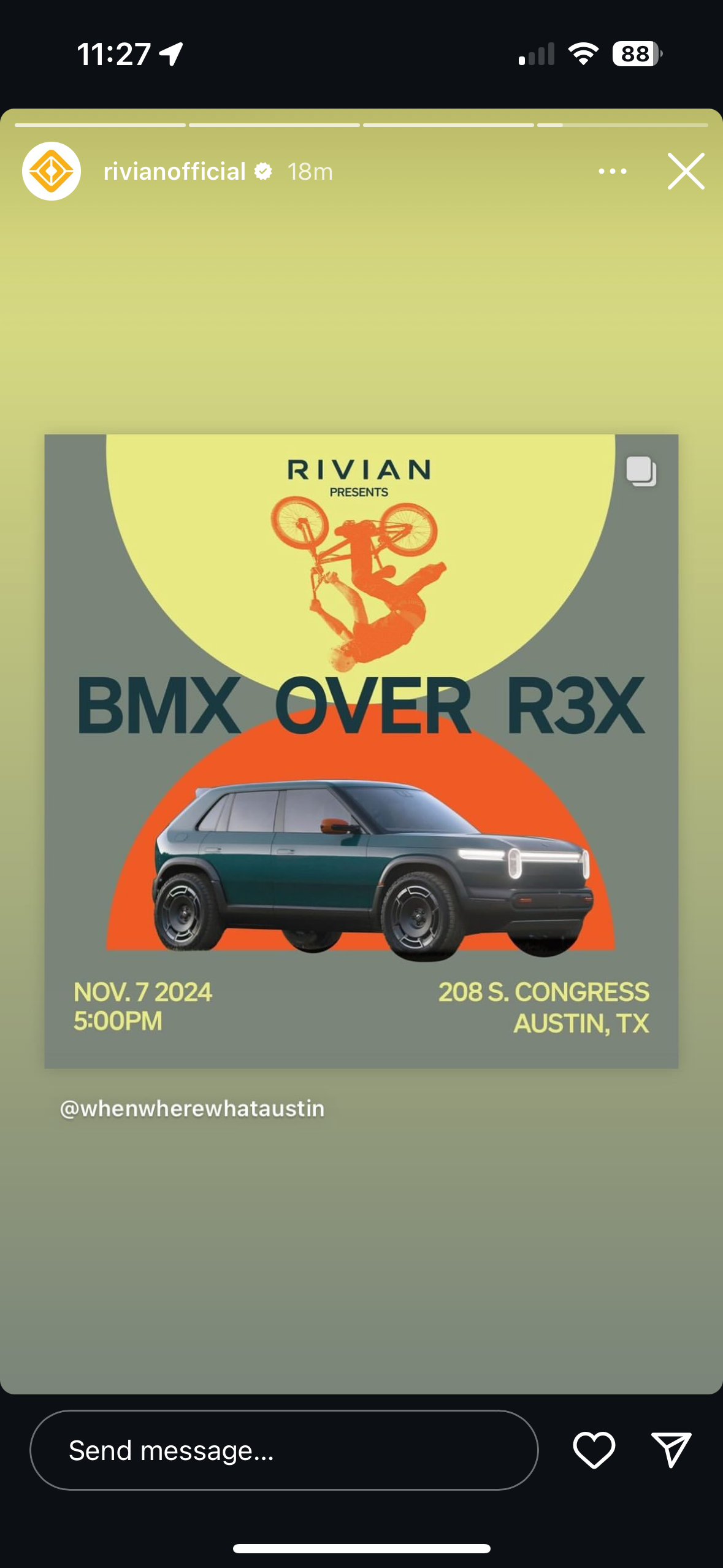After receiving a tentative yes from my boss and my boss’s boss, I jumped through a variety of hoops with the internal Rivian legal and risk team to ensure we were all on board. I worked with Aaron Ross to build a team of incredible Austin BMX riders, including Brett Silva, Chase Hawk, Jayden Mucha, and Darryl Tocco, who captured all the content. Then, on 11/7/24, we jumped the hell out of a million-dollar R3X prototype.